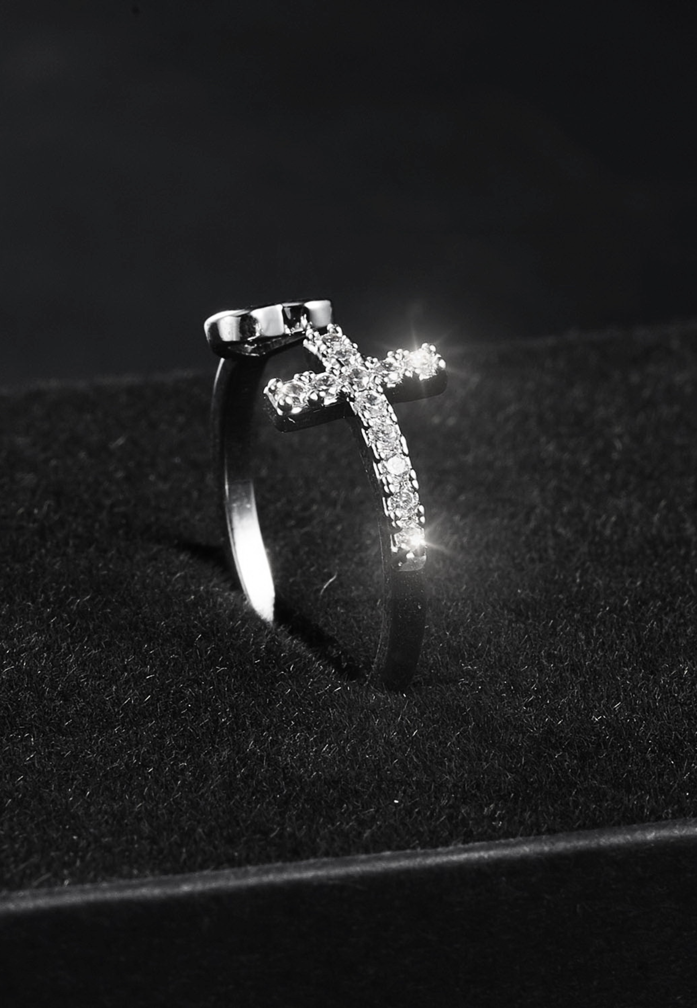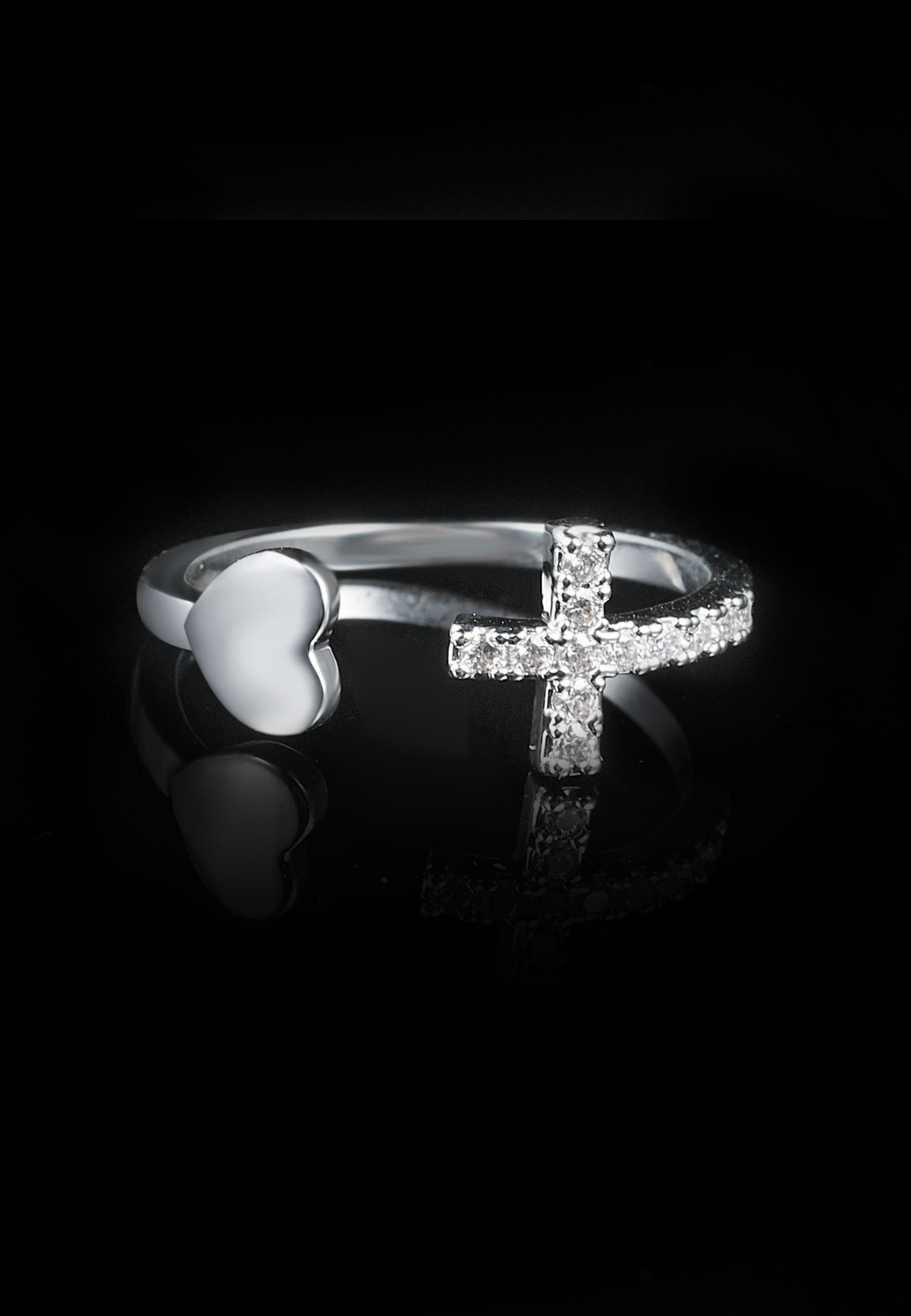Iced Cross Heart Ring