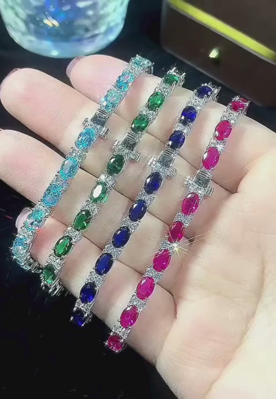 Aquamarine Oval Cut Tennis Bracelet